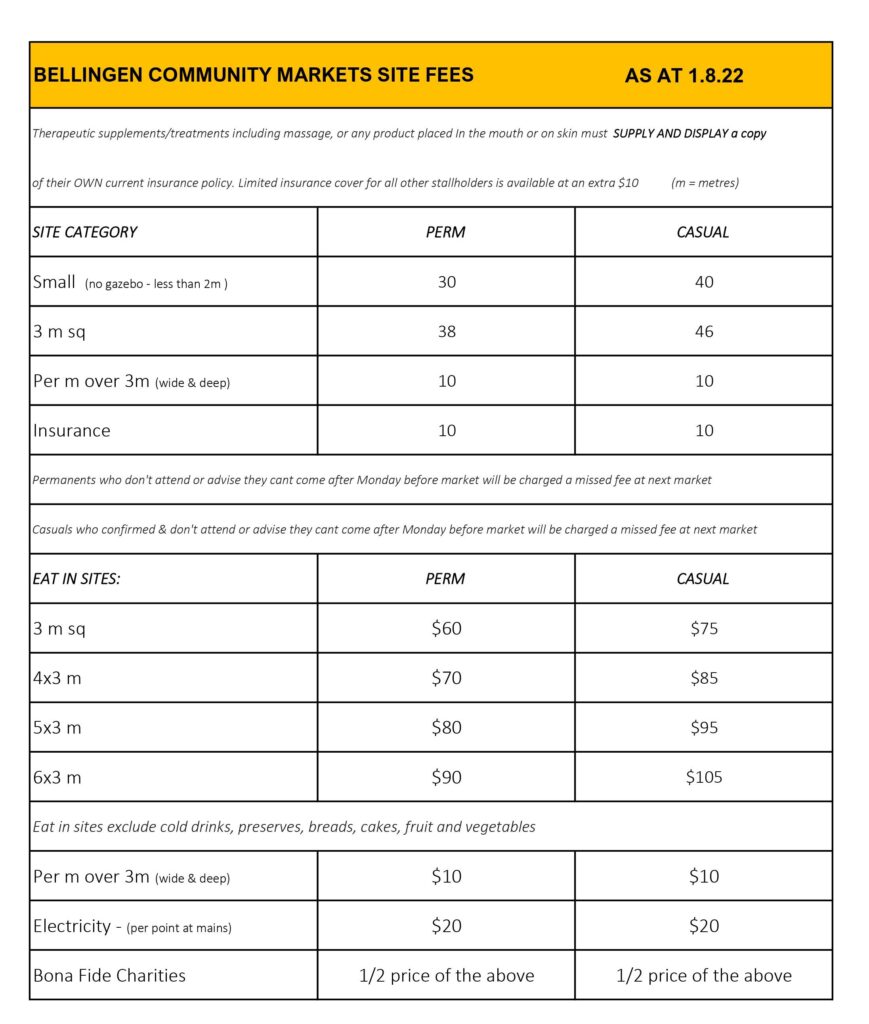 Thanks for your interest in being a casual stallholder at Bellingen Community Markets.